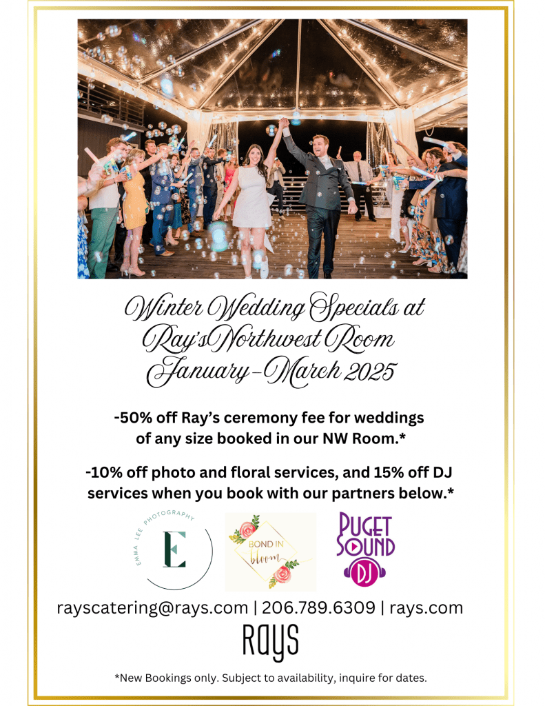 Book a gorgeous Winter wedding at Ray’s Northwest Room January through March 2025 and receive special rates on venue, floral, photography and more!